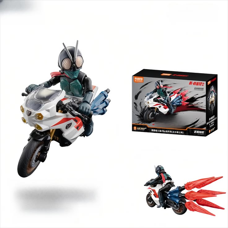 Action figure Kamen Rider Shin dengan motor futuristik yang keren dan detail tinggi. Cocok untuk kolektor maupun penggemar Kamen Rider, tampil dengan desain unik dan efek booster di bagian belakang motor yang membuat tampilannya semakin badass.